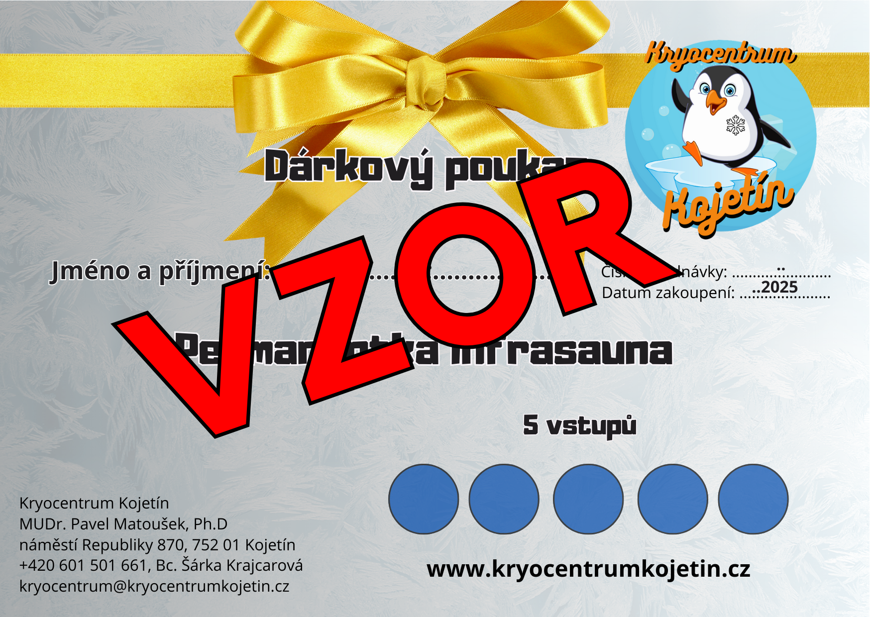 5 vstupů do infrasauny na dobu maximálně 60 minut pro jednu osobu
